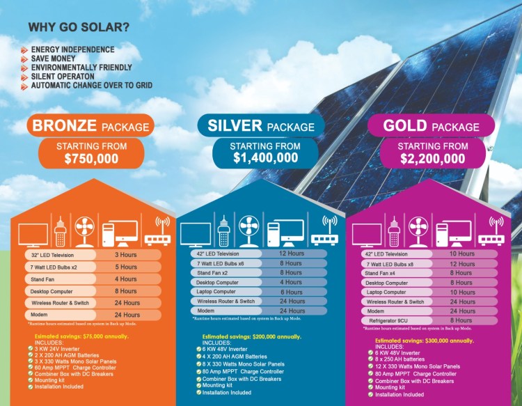 We currently offer three solar power packages and can also customise systems specifically for you! Contact us here for more details.